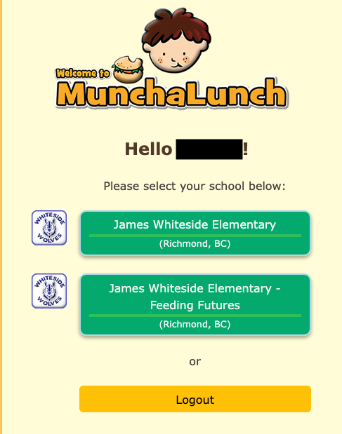 After you log into your account, select the second button, "Feeding Futures", for this program. (The first button is for PAC - Hot Lunch, Halloween Party, Spring Fair, etc.)